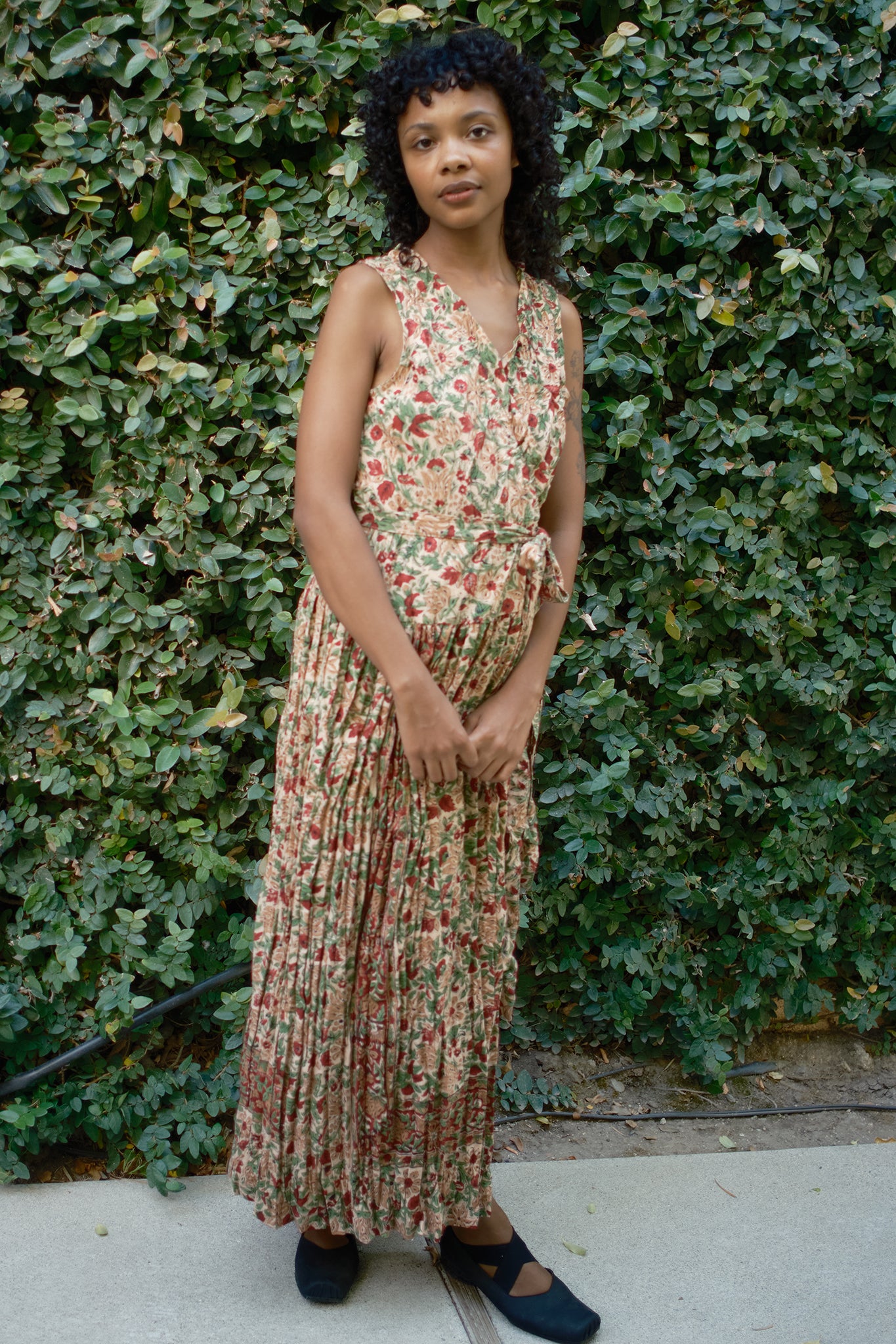 Broomstick pleating is done in Los Angeles. Machine wash and dry. Clear twisting instructions to keep the pleat sewn into the garment.